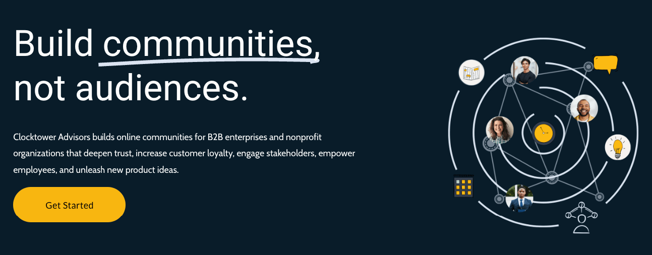 Based in the U.S., Clocktower Advisors is a compact but mighty community strategy partner with a core team of 8–10 experts specializing in B2B and non-profit sectors.
